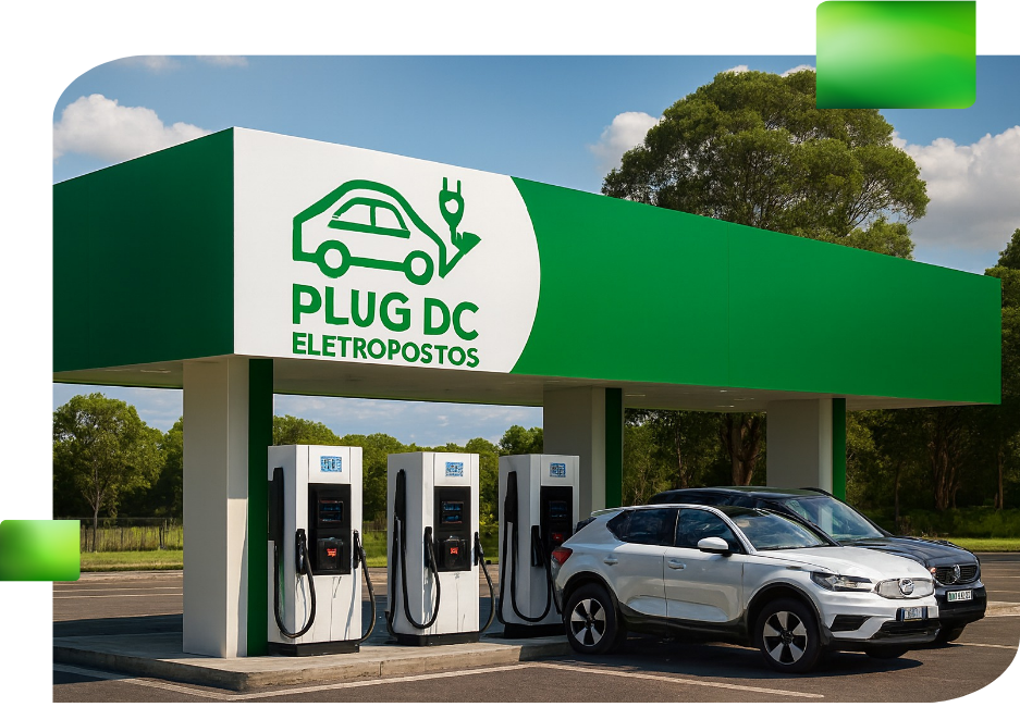 A PlugDC é uma empresa especializada na instalação e GESTÃO de postos de carregamento para veículos elétricos para permitir investimento em eletro postos. Nosso compromisso é impulsionar a mobilidade sustentável, oferecendo soluções seguras, modernas e eficientes para nossos clientes. Com tecnologia de ponta e uma equipe altamente capacitada, conectamos motoristas ao futuro da energia limpa. Na PlugDC, acreditamos que cada carga é um passo rumo a um planeta mais verde, inteligente e preparado para o amanhã.